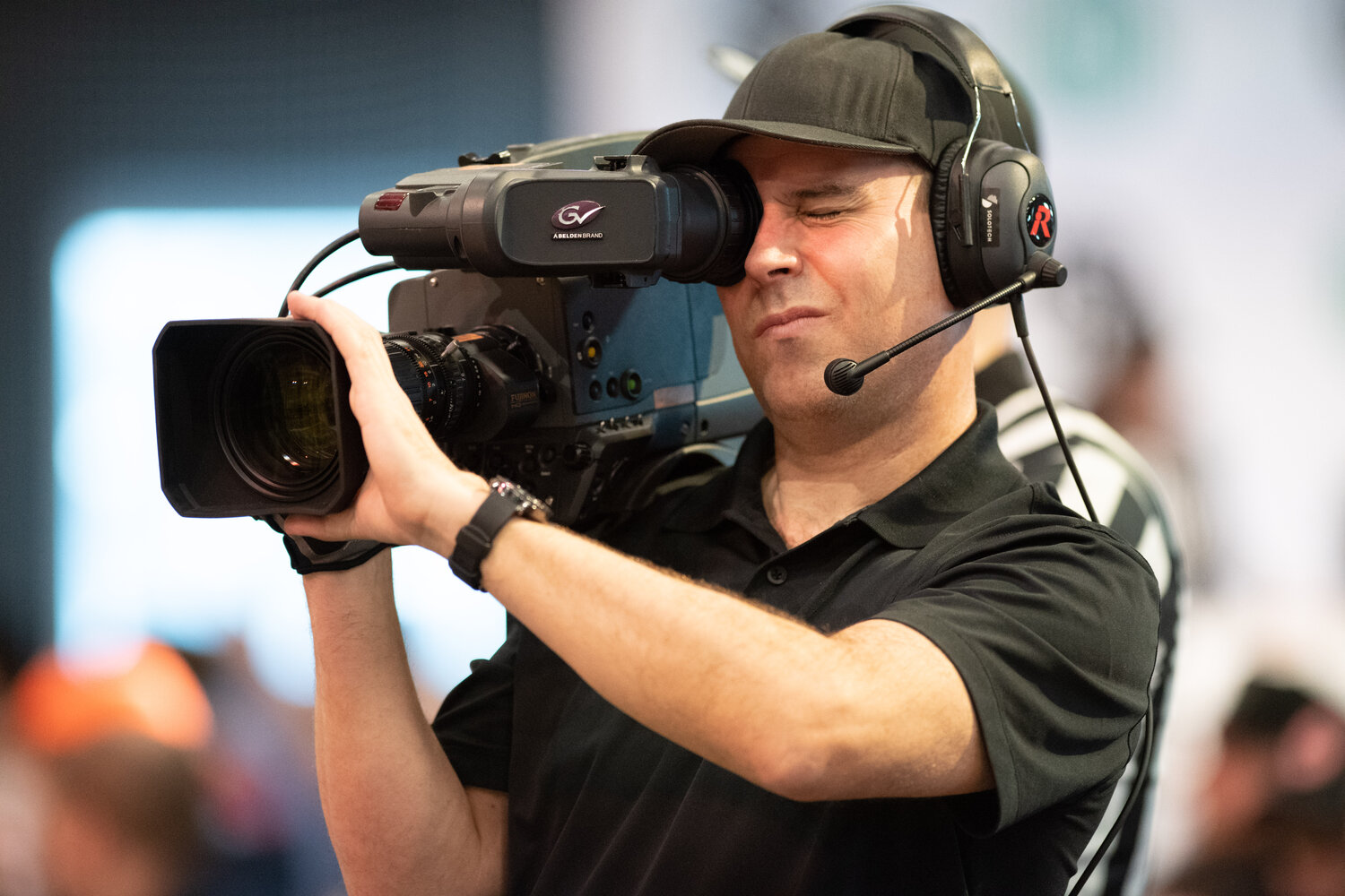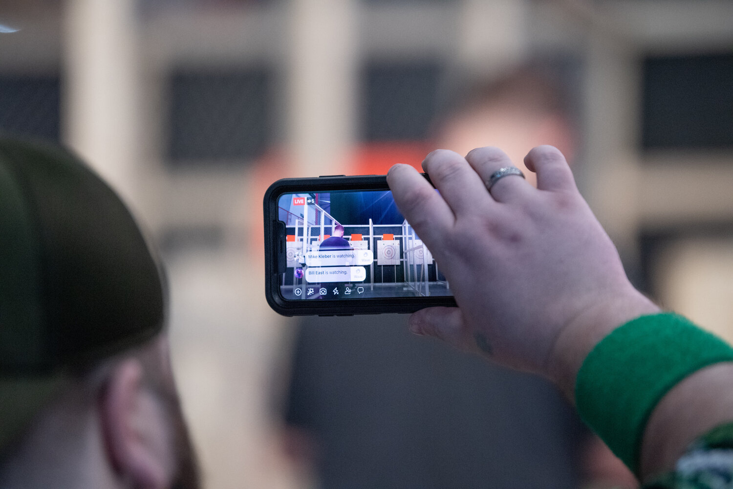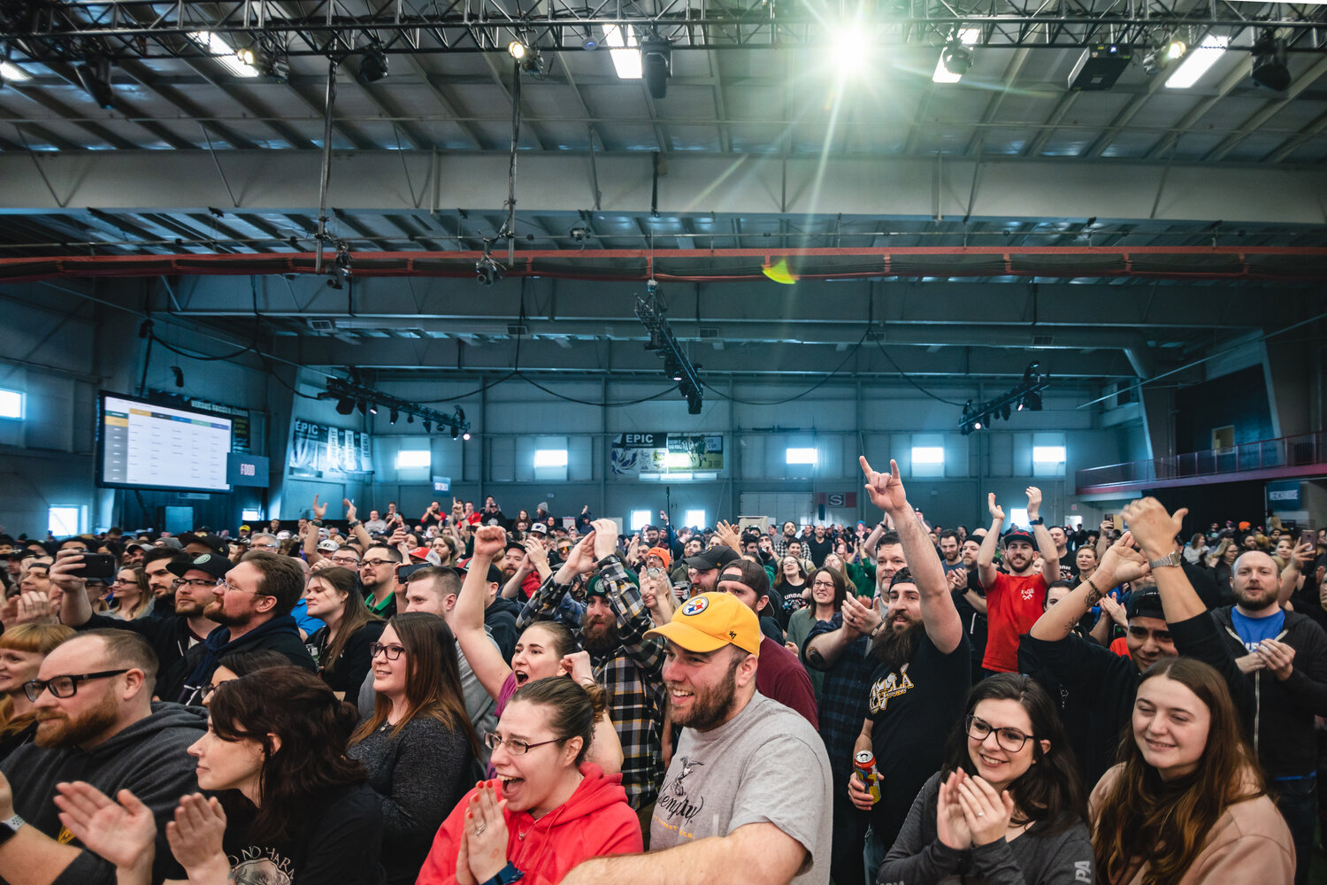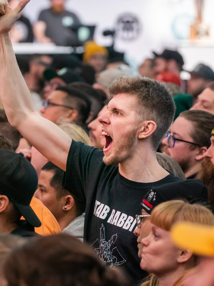Live stream of championship, announcer booth, food station, bar, merch area